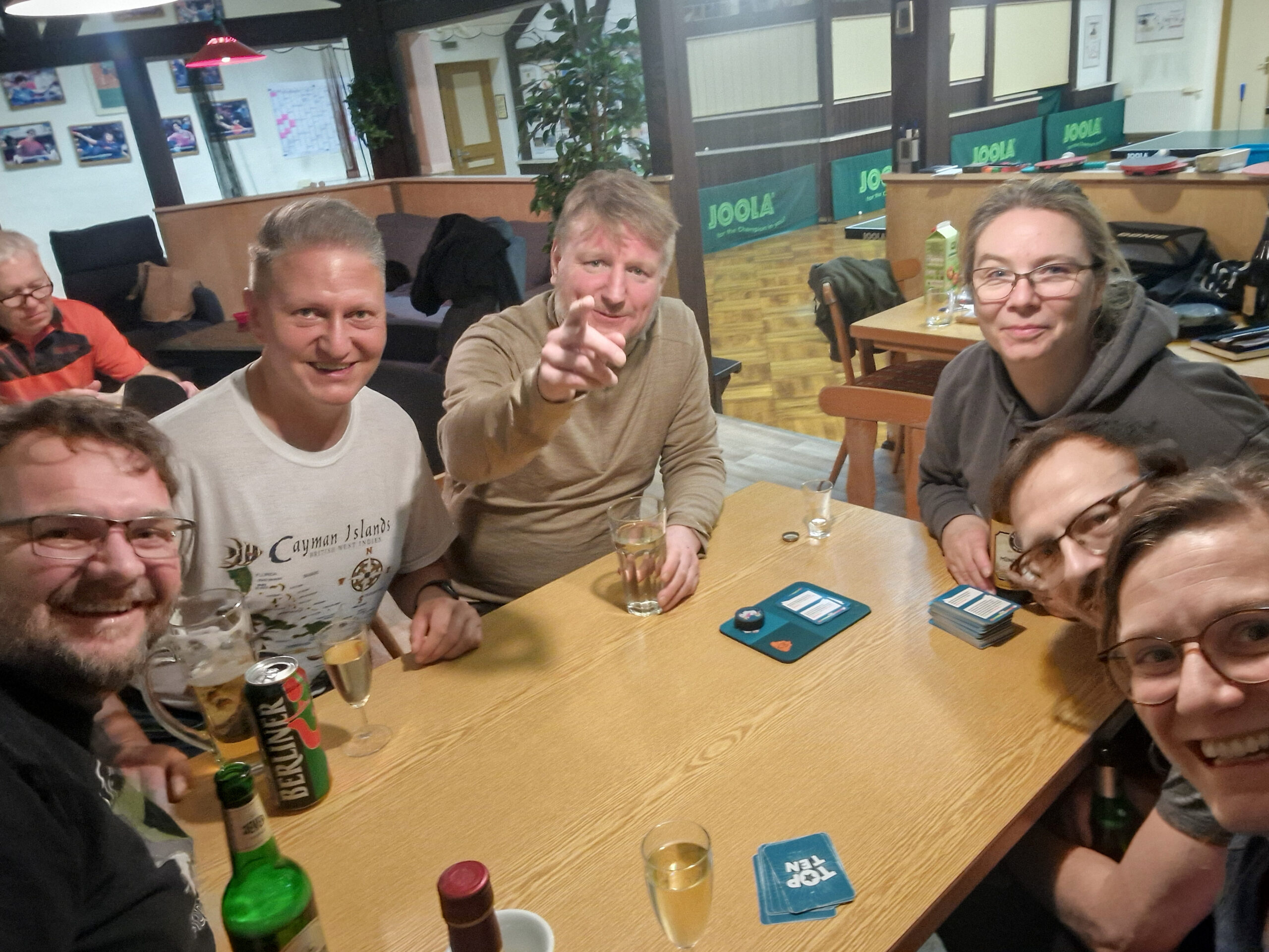 Zum Abendprogramm gibt es natürlich – was sonst – noch mehr Tischtennis, manchmal auch am Vierertisch und bis in die Nacht. Aber auch die eine oder andere Runde Skat oder andere Brett- und Kartenspiele – Hauptsache Gemeinschaft.